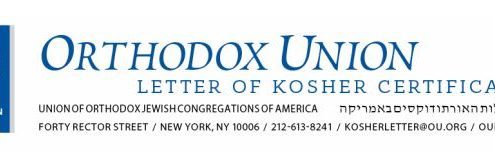 We Renewed our KOSHER Certificate with Orthodox Union!